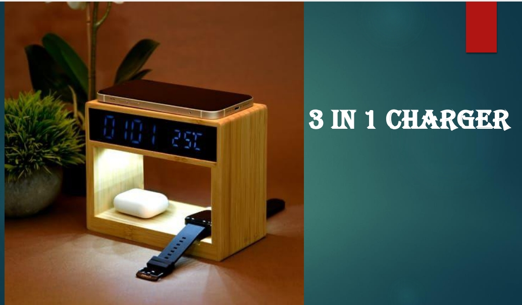 The 3-in-1 charger is a versatile device designed to simultaneously charge multiple gadgets like smartphones, smartwatches, and earbuds.
